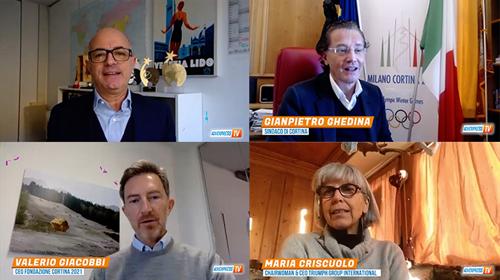 Eventi Countdown per i mondiali di sci Cortina 2021. Ghedina (Sindaco), Giacobbi (Fondazione) e Criscuolo (TGI): "Un grande evento che intende portare speranza e ottimismo al Paese e alla event industry"26/01/2021 20:16