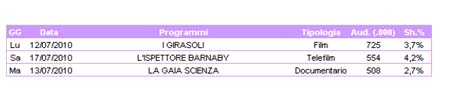 Per La 7 risultati positivi grazie al film I Girasoli, che guadagna un ascolto di 725 mila individui e il 3,7% di share.
