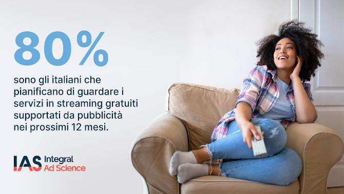 Secondo IAS, la maggioranza dei consumatori italiani (85%) sono disposti a guardare gli annunci per avere accesso a contenuti in streaming gratuiti. Otto italiani su 10 (80%) prevedono di iniziare a guardare i servizi in streaming gratuiti supportati da pubblicità nei prossimi 12 mesi.