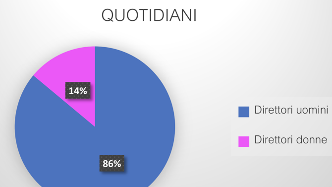 Il punto di partenza della survey è il riscontrato squilibrio di genere ai vertici delle principali testate italiane. I direttori dei quotidiani italiani sono infatti 86% uomini, mentre le donne sono solo il 14%. Alla direzione dei settimanali italiani, troviamo il 77% uomini e il 23% donne. Per quanto riguarda i mensili, i direttori sono 63% uomini e 37% donne.