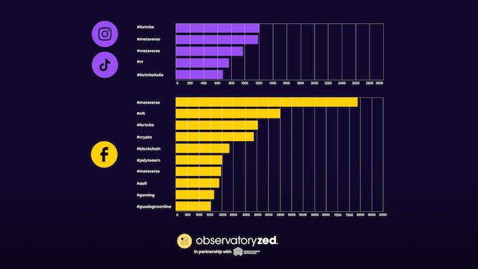 In generale, dal Report di ObservatoryZed e dell’Osservatorio Metaverso, si evince come sia su TikTok sia su Instagram prevalga il tema del Metaverso inserito nei contesti di gaming, con Fortnite e Minecraft in prima posizione. La piattaforma sound-on, però, rappresenta quella con il minor numero di contenuti: infatti è stato necessario prendere in esame anche gli utenti che avevano postato una sola volta nel periodo in questione.