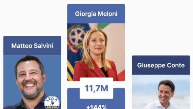 Al fattore reputazionale si aggiunge inoltre la crescita esponenziale sui social: 11,7 milioni di follower, in espansione del 144% rispetto a settembre 2022 (termine della campagna elettorale). Un dato molto significativo se si considera che, nello stesso periodo, Matteo Salvini e Giuseppe Conte – secondo e terzo per numero di follower – crescono rispettivamente solo del 6 e dell’8%.