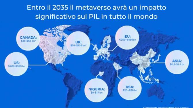 Secondo lo studio Il metaverso e l'opportunità per l'Unione Europea il potenziale impatto economico del metaverso in Italia potrebbe raggiungere i 28-52 miliardi di euro entro il 2035, attraverso la crescita delle competenze digitali nel nostro Paese.