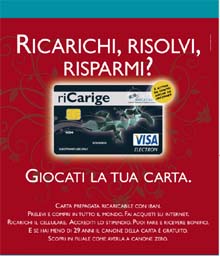 Banca Carige ha affidato all'agenzia milanese di via boccaccio, l'incarico per la comunicazione su stampa quotidiana e nei punti vendita di Ricarige, la nuova carta prepagata con Iban, presente nelle banche del gruppo.