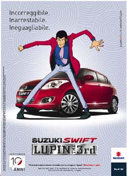 Per il lancio della nuova Suzuki Swift con dettagli cromati in Limited Edition, Suzuki Italia ha affidato nuovamente a Tribe Communication, già autrice della precedente iniziativa per Swift Sport, l'incarico di realizzare la campagna pubblicitaria. L'agenzia ha puntato su Lupin III, il 'ladro gentiluomo', protagonista di una nota serie di cartoni animati. Il personaggio, infatti, è espressione autentica della 'Japan Coolture' e della cultura nipponica, come la Suzuki Swift.