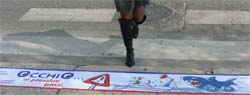 Questi insoliti pannelli 'pubblicitari' hanno dato inizio ad una operazione di comunicazione sociale a favore della sicurezza stradale con lo slogan 'Occhio ai prossimi passi' che utilizza proprio la strada come ambiente idoneo alla divulgazione di questo delicato tema.