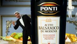 Aprendo un’enorme bottiglia di aceto balsamico Ponti, l’attore sottolinea, grazie all’entrata in scena di due avvenenti ragazze, l’attenzione di Ponti alla qualità del prodotto: la selezione delle materie prime, il rigore del processo produttivo e i periodi certificati di maturazione e invecchiamento in botti di legno pregiato. Durante la spiegazione, Tognazzi non sfugge alla vista della severa collega giapponese Ai Nagasawa, che, dall’alto delle sue dimensioni normali, 'gli rovina la festa', lo prende per il collo e gli fa letteralmente prendere il volo.
