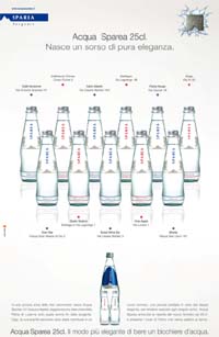 La campagna, pianificata sui quotidiani La Stampa e La Repubblica, presenta anche i locali di Torino che aderiscono al lancio. La monoporzione di acqua Sparea trasforma il piacere di bere un semplice bicchiere d’acqua in un inconfondibile gesto di stile e la rende particolarmente adatta a un target dinamico e attento ai dettagli. Il nuovo prodotto è destinato al canale hotel, ristoranti e bar di fascia premium.
