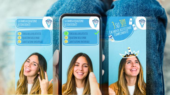 Con il supporto di influencer di Instagram e Tik Tok, Acutil Quiz lancia una sfida alla Gen Z: “Cambiate prospettiva: anche imparare e sfidarsi sulle proprie conoscenze può essere davvero divertente!” Acutil Fosforo è stato un vero apripista sulle piattaforme digitali. È infatti dal lontano dicembre 2014 che presidia il mondo dei social con un approccio edutainment innovativo, grazie alla collaborazione con Isobar, agenzia creativa focalizzata su digital experience e business transformation di dentsu. Tanti gli ingredienti per la miscela perfetta considerati da Isobar per la realizzazione di questo progetto: le nuove tecnologie, il dato, le analisi del target, la proposta di contenuti di valore, la creatività. Il nuovo Filtro, già disponibile sull’account Instagram del brand Acutil Fosforo, rinnova la dinamica del quiz storico degli anni precedenti, permettendo un'esperienza interattiva e istantanea che più si avvicina al mondo del gaming e alla velocità delle nuove generazioni.