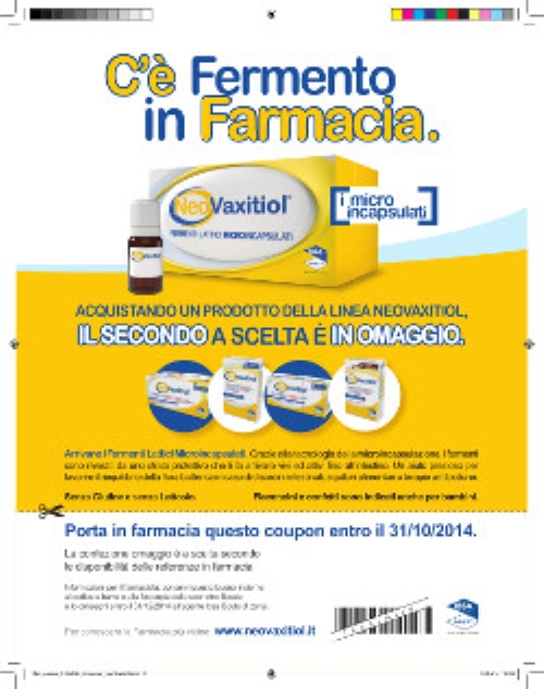 La nuova campagna pubblicitaria si rivolge a milioni di lettori di periodici a target femminile e famiglia comunicando una promozione che permette di ottenere un prodotto NeoVaxitiol fermenti in omaggio, dopo avere acquistato il primo.