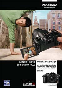 Panasonic è on air con la campagna adv sulla nuova DMC-G2, fotocamera digitale compatta ad ottiche intercambiabili e funzionalità touch-control. Pianificazione con focus sui programmi a tema Mondiali di Calcio: si parte alla vigilia della manifestazione per proseguire fino alla finalissima dell’11 luglio. La pianificazione interessa principalmente le reti Rai, con spot da 10 e 30" (annuncio e break pubblicitario) durante tutte le trasmissioni a tema calcistico, e Sky, durante tutte le partite in tabella. Previsti in totale oltre 270 passaggi. Spot a tema anche sul web, con pianificazione su tutti i siti Mediaset: uno speciale banner Lumix segnalerà in diretta all’utente eventuali gol segnati durante la navigazione.
