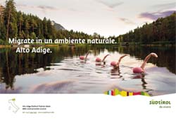 La nuova campagna stampa ripropone il concept dello spot tv: la 'migrazione' in Alto Adige da parte di gruppi umani che in questo habitat riscoprono la loro natura.
