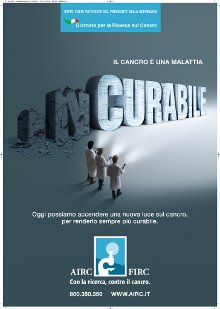 Anche quest'anno un importante evento di informazione e sensibilizzazione sui progressi ottenuti dalla ricerca sul cancro. A supporto una campagna declinata su stampa quotidiana nazionale e locale, affissioni e materiali btl, firmata da Brand Portal per comunicare lo sforzo fatto dalla ricerca per rendere il cancro una malattia sempre più curabile.