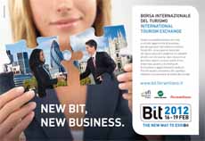 Il progetto Bit 2012 rappresenta un momento di forte evoluzione nei contenuti, sempre più rivolti a supportare il business, come testimonia il claim di campagna “New Bit, New Business”. “Oggi anche le aziende che operano nel B2B, tradizionalmente poco propense alle azioni di branding, affrontano consapevolmente il clima di instabilità economico finanziario ripensando ed ampliando la propria strategia di marca in un’ottica di business globale” spiega Nicola Spanu, Strategic Account Director. “Il nostro obiettivo è stato proprio questo: costruire il progetto Bit tenendo conto delle logiche attuali del business turistico con un’idea creativa pensata per abbracciare tutti i media e le iniziative collaterali multicanale.”Un nuovo modo di comunicare la Bit che evidenzia con chiarezza le opportunità relazionali della manifestazione: l’icona del puzzle rappresenta il trait d’union di tutti gli strumenti di comunicazione, con un’immagine che unisce simbolicamente gli angoli del mondo e i manager del turismo.