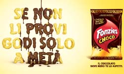 blogger relations, un evento celebrativo ad hoc per la degustazione del prodotto, una campagna pubblicitaria sugli schermi televisivi e al cinema e quella affissionale, tutte con protagonista Fonzies Choco.