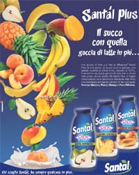 Santàl ha scelto le pagine delle più autorevoli riviste di settore, come Mixer, Bar Business e Bargiornale, per comunicare alla forza vendita il lancio dei nuovi gusti Pera Williams e Ananas + Banana, che si aggiungono al classico Pesca + Mango. La comunicazione punta sull’unicità del prodotto Santàl Plus (il primo a combinare la frutta e il latte) e sceglie di raccontarla con semplicità e freschezza grafica, coerentemente con il mood dell’azienda. L’obiettivo è quello di evidenziare, ancora una volta, la varietà di una gamma in continua evoluzione.