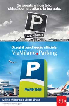ViaMilano Parking, il servizio SEA che gestisce i parcheggi degli aeroporti di Milano Malpensa e Milano Linate, porta all'attenzione dei viaggiatori i propri numerosi vantaggi competitivi. Pur operando in quello che potrebbe apparire come un mercato di commodity e quindi largamente indifferenziato, SEA è riuscita a creare con ViaMilano Parking un ampio pacchetto di servizi incentrato sul “parcheggio di qualità”, con prezzi allineati - e in molti casi addirittura vantaggiosi- rispetto ai diretti competitor.Ecco perciò una campagna dal taglio decisamente comparativo che si articola in ben quattro soggetti, ciascuno mirato su un preciso benefit. La campagna, eseguita da Cernuto Pizzigoni & Partners, con Roberto Pizzigoni art director e Aldo Cernuto copywriter, si sviluppa sui mezzi IGP Decaux - a partire dal 18 giugno - in affissione dinamica e statica, con ulteriori applicazioni nel circuito LCD e nelle postazioni speciali all'interno dell'aeroporto e nella sua immediata prossimità. È inoltre previsto l'abbigliaggio totale di tram in transito nei percorsi cittadini.