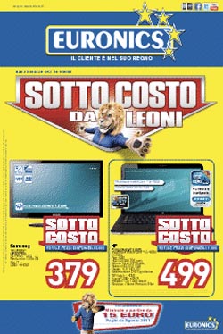 Euronics Italia torna on air da Giovedì 24 marzo a Sabato 2 aprile con la promozione 'Sottocosto da Leoni' che prevede la distribuzione nazionale di 14 milioni di volantini in formato maxi tabloid e propone offerte su un'ampia selezione di prodotti in tutti i punti vendita della catena.Con l'occasione torna sugli schermi tv Napoleone. Il cliente che entrando da Euronics si trasforma in leone, grazie alle offerte, alla cortesia del personale e ai servizi erogati che lo fanno sentire nel proprio Regno.
