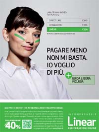 Nuova campagna innovativa e web oriented per Linear Assicurazioni, la compagnia online del gruppo Unipol. Si conferma il fil rouge della comunicazione comparativa mettendo a confronto il prezzo Linear con quello di altre compagnie dirette, ma allo stesso tempo viene sottolineato ed affiancato dal concetto di servizio, di cui Linear è specialista. La genesi della campagna ha una qualità precisa: l’essere ‘nativa digitale’, cioè ideata pensando al web e alla comunicazione digitale. ‘Voglio di più’, questo il titolo della nuova campagna 2013, evoluzione di quella precedente. Linear vuole avvicinarsi ancora di più ai già fruitori delle compagnie dirette, coloro cioè che sono già abili ed autonomi alle modalità operative del rapporto one-to-one, senza alcun tramite, trasmettendo loro 10 buoni motivi per cui Linear è Incomparabile. Nella campagna ogni buon motivo è rappresentato da altrettante persone/testimonial della Tribù Linear, caratterizzate dai segni verdi sul viso, simboli di riconoscibilità e appartenenza.