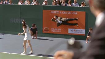 Torna on air la campagna Ing Direct 'La nostra migliore pubblicità sono i nostri clienti'. 'Tennis' sarà il primo soggetto televisivo, dedicato a Conto Corrente Arancio, di un piano di comunicazione che prevederà anche l’utilizzo di annunci stampa e radio. Questa volta l’idea visiva dell’affissione umana appare nel bel mezzo di una partita di tennis.