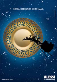 In occasione del Natale 2009, Alessi lancia la campagna stampa firmata Lowe Pirella Fronzoni che sarà on air a partire dal 18 novembre.La creatività è volta a sostenere l’immagine extra ordinary del brand con il tono irriverente e sorprendente che da sempre contraddistingue la sua comunicazione. Alessi infatti decontestualizza un pezzo di design realizzato per la collezione natalizia per inserirlo all’interno di un mondo magico.