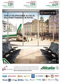 E’ on air in questi giorni la nuova campagna a firma Publicis per il lancio del nuovo prodotto ‘VoloVacanze’. Alitalia, in collaborazione con selezionati Tour Operator, offre pacchetti vacanza comprensivi di volo più hotel per viaggiare in Italia, in Europa e nel mondo a tariffe convenienti.Da oggi, quindi, acquistando le VoloVacanze Alitalia ‘voli direttamente in hotel’.