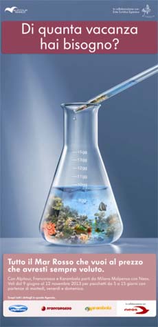 E' on air la campagna ideata da M&C Saatchi per Alpitour World, che in collaborazione con l’Ente del Turismo Egiziano e la compagnia aerea Neos, invita le persone a partire per il Mar Rosso, dosando la propria vacanza sia nella durata che nel prezzo.L’operazione multifrequenza su Sharm El Sheikh, per i brand Alpitour, Francorosso e Karambola, permette infatti di acquistare pacchetti con durata flessibile e partenze altrettanto flessibili, a prezzi decisamente competitivi. Dentro un’ampolla è racchiuso il Mar Rosso che hai sempre desiderato, che è pronto a essere dosato e goduto nella modalità più consona alle esigenze dei turisti.