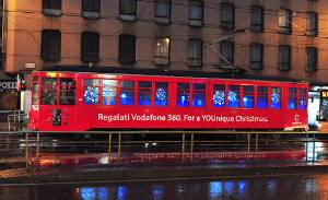 Inoltre da metà dicembre un tram speciale di colore rosso e interamente brandizzato Vodafone girerà per le vie di Milano. Al posto dei finestrini ci saranno video che proiettano la creatività 360, adattata al periodo natalizio. In particolare si tratta di fuochi d’artificio che partono dal telefonino e che sono formati dalle icone delle applicazioni o dalle foto di profili. In linea con la creatività della campagna, anche queste affissioni riprendono il concetto base per cui l’ universo di ciascuno di noi è composto dai nostri amici e contatti con cui interagire, parlare, scambiare immagini e condividere musica.