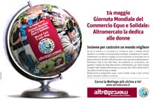 Italia Advertising firma la campagna pubblicitaria di Altromercato in occasione della Giornata Mondiale del Commercio Equo e Solidale che ha coinvolto, il 14 maggio, 73 Paesi in tutto il Mondo, forti del fatto che questo tipo di commercio non solo può cambiare singole vite, intere comunità e alleviare la povertà ma è un vantaggio per tutti, anche per i consumatori. Altromercato ha deciso di dedicare questa giornata anche alle donne, vero motore in grado di far ripartire le economie più disagiate e grande collante all’interno dei nuclei familiari.La necessità del cliente è sempre il ribadire quali sono i valori sui quali si fonda il Commercio Equo e Solidale di Altromercato, con l’intenzione di fare capire ai consumatori che non si tratta di charity ma di commercio giusto. Una realtà di commercio, insomma, che esiste da oltre vent’anni e lavora attivamente per costruire un’economia corretta e sostenibile per tutti, che collabora con i produttori riconoscendo loro il giusto prezzo affinché possano vivere dignitosamente e controlla ogni fase della filiera al fine di garantire il rispetto dei diritti umani e dell’ambiente. Le botteghe Altromercato possono così proporre oltre 2000 prodotti di qualità, trasparenti nelle informazioni e nel prezzo, frutto di una politica economica equa e solidale.