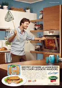 La campagna stampa e banner, inoltre, grazie ai due soggetti realizzati sotto la direzione creativa di Stefania Siani e Federico Pepe, gioca con l’idea di una leggerezza da “non farsi sfuggire” e presenta due varianti: una donna pronta a prendere al volo con un guantone da baseball i suoi Cuor Leggeri in preparazione nel tostapane ed un uomo che, prima di aprire il forno, si prepara a ‘catturare’ i Cuor Leggeri con un retino per farfalle. Gli scatti sono stati realizzati presso lo showroom di Veneta Cucine La Prat Mar, a San Donato Milanese.