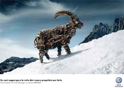 Da oggi le montagne italiane sono popolate da una nuova creatura, nata per raggiungere le vette più alte. Si chiama Amarok ed è il nuovo Pick Up della marca Volkswagen Veicoli Commerciali. Da questo spunto nasce la campagna ideata da DDB e pianificata nelle principali località sciistiche italiane. Il visual rappresenta infatti uno stambecco di natura molto differente rispetto a quelli che siamo abituati a vedere: un animale letteralmente costruito per scalare ogni tipo di montagna, al centro del quale si trova un Amarok. È proprio il nuovo Pick Up Volkswagen il cuore pulsante, il motore, l’anima stessa di tanta potenza. Perché, come sottolinea il copy: Se vuoi raggiungere la vetta devi essere progettato per farlo.