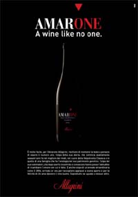 Amarone Allegrini celebra il sessantesimo compleanno con una campagna pubblicitaria firmata Itaca Comunicazione, che ha colorato di rosso le ultime tre lettere del nome sulla prestigiosa etichetta: One.