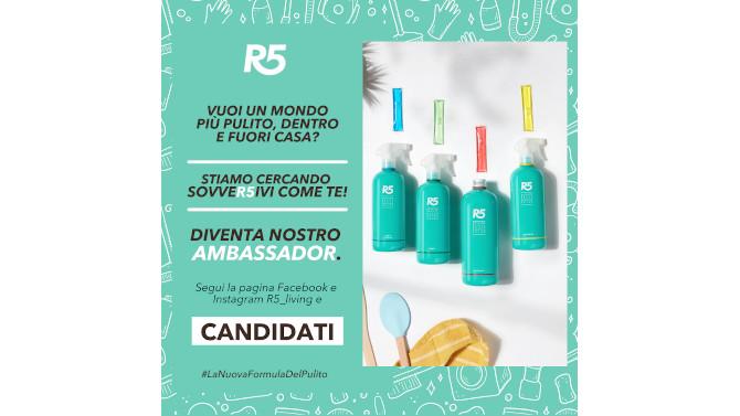 L’Ambassador R5, che incarna i valori del brand, dovrà presentare i prodotti in modo naturale e spontaneo, utilizzandoli nella vita di tutti i giorni. La collaborazione, della durata di sei mesi, prevede oltre all’invio di tutta la gamma dei prodotti, un buono spendibile all’interno del sito www.r5living.com, la spedizione in anteprima esclusiva delle novità, la partecipazione a tutte le iniziative del brand e molto altro ancora.