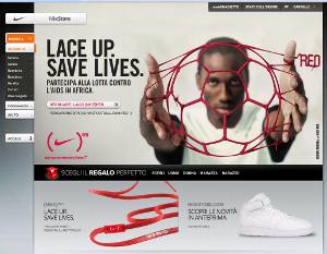 Anche in Italia si celebra la campagna 'Lace Up, Save Lives', lanciata da Nike e (RED) il 30 novembre scorso a Londra per sostenere la lotta all’AIDS in Africa. Questa collaborazione, basata su un duplice approccio alla lotta all'HIV/AIDS in Africa, intende raccogliere fondi per sostenere i programmi di educazione, prevenzione e assistenza sul territorio sfruttando lo sport per mobilitare i giovani di tutto il mondo nella lotta contro l'AIDS in Africa.Nike coglie l’occasione di una delle più importanti sfide del campionato, Juventus-Inter, per sensibilizzare tutti i tifosi e gli appassionati italiani all’acquisto dei lacci rossi Nike(RED). Oggi 4 dicembre, dalle ore 17.00 la cupola della Mole Antoneliana sarà coperta da un fascio di luce rossa, colore dominante della campagna. Sabato 5 dicembre i seggiolini della tribuna centrale dello Stadio Olimpico saranno di colore rosso e bianco e comporranno la frase 'Lace Up, Save Lives'; inoltre numerosi calciatori di Juventus e Inter scenderanno in campo indossando i lacci rossi Nike(RED).