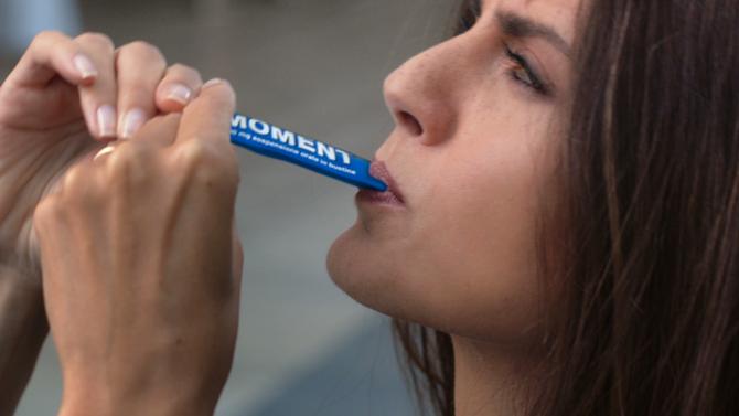 Il filmato aggancia l’attenzione con forti, siglanti richiami iniziali. Una scritta 'Mal di testa' rossa “piomba” accompagnata da un effetto sonoro sulla fronte di ciascuno dei tre protagonisti ripresi in un momento della loro vita quotidiana e lo blocca. Ci pensa il nuovo Moment in formulazione liquida. Facile da assumere: basta portare la bustina alla bocca, premerla e farla scorrere con due dita per accompagnare in bocca il liquido pronto da bere.