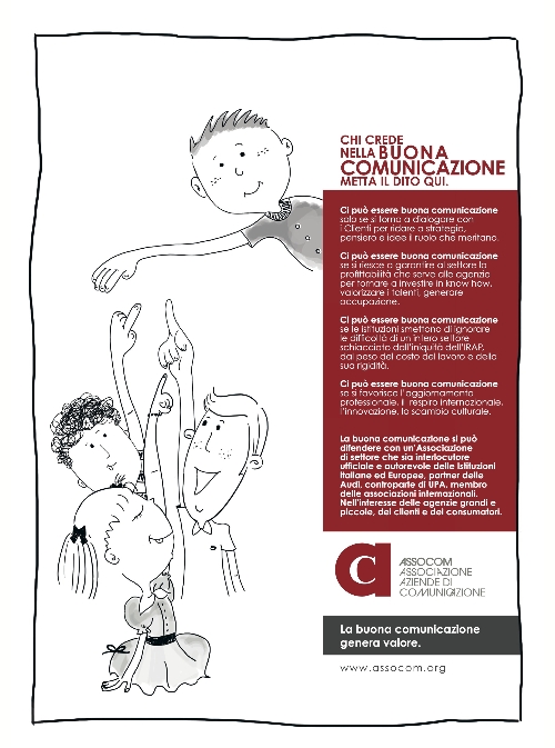 Con questa campagna Assocom, conclude la nota, intende smuovere le coscienze di tutti gli operatori del settore, convincerli che questi problemi possono essere affrontati in modo più efficace solo lavorando insieme per un obiettivo comune: invertire la tendenza di un mercato che oggi è volto solo alla riduzione dei costi senza preoccuparsi della qualità e del valore, soprattutto economico, che invece la buona comunicazione riesce a generare