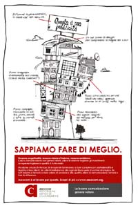 Mentre purtroppo, complice anche drammatica situazione economica globale, il rapporto fra clienti e agenzie pubblicitarie è sempre più caratterizzato da dinamiche che ostacolano la progettualità, la visione d’insieme, l’approccio di partnership. Tutto questo genera un circolo vizioso: la comunicazione fatta in questo modo non genera ritorni, le aziende tagliano gli investimenti, le agenzie tagliano la qualità. E tutto rischia di crollare, come mostra eloquentemente la creatività della campagna Assocom.
