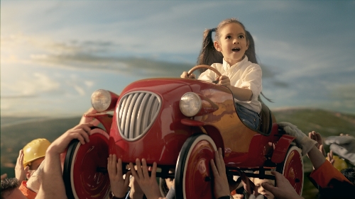 Nello spettacolare follow up televisivo - che ha richiesto al regista Dario Piana 3 giorni di shooting e alla post-produzione BUF Parigi un mese e mezzo di lavoro - una bambina guida un’automobilina rossa attraverso le autostrade d’Italia e del mondo, sospinta dai lavoratori di Autostrade per l’Italia e di Aeroporti di Roma. Il viaggio metaforico della bambina si conclude a Fiumicino - presso l’aeroporto Leonardo da Vinci, il più importante scalo nazionale - dove nuovi scenari di sviluppo si aprono per il gruppo Atlantia.