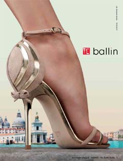 Il nuovo concept creativo 'L’Alta Donna' mostra una donna seducente che indossando una creazione Ballin, domina lo spazio a lei circostante, come se fosse su un piedistallo. Il soggetto mostra infatti la posizione privilegiata della donna che su tacchi a stiletto si affaccia su uno scorcio di Venezia, sottolineando il legame imprescindibile tra la scarpa Ballin e l’Italia.