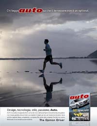 'Auto, the Opinion Driver'. E’ questo il pay-off che racchiude il dna della nuova campagna creativa lanciata da Conti Editore, attivo nel settore dell’editoria sportiva, per Auto, il mensile di riferimento che da 25 anni appassiona gli amanti delle 4 ruote. On air a partire da metà ottobre su stampa, radio e internet, il concept della campagna focalizza l’attenzione su un testimonial d’eccezione: il suo lettore, 'un uomo che non si allinea all’opinione dominante, guida e non si lascia guidare. Sa vivere e scegliere bene perché è un uomo, molto di più un automobilista'. Leggere Auto è per lui una scelta consapevole, un’informazione libera, competente e completa. Non solo automobili, quindi, ma come cita il claim stesso 'design, tecnologia, stile, passione'.