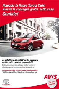 Autonoleggio a domicilio con Avis e Yaris. Firma Adpresscommunications