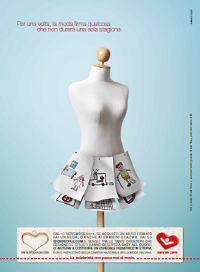 La creatività è stata sviluppata su stampa, radio e tv, on air sulle principali testate ed emittenti nazionali e satellitari. Protagonista dell’annuncio stampa è un abito molto particolare: il modello è fatto di disegni di bambini.