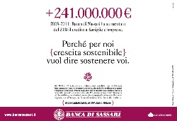 Una piccola banca legata al territorio regge meglio i tempi di crisi e riesce a dare sostegno ai suoi clienti: è questo il senso della svolta tattica nella comunicazione della Banca di Sassari, appartenente al Gruppo BPER.Con una campagna impostata su quotidiani, tv e radio, Banca di Sassari sottolinea come, nel 2011, abbia ottenuto lusinghieri risultati, riuscendo anche ad