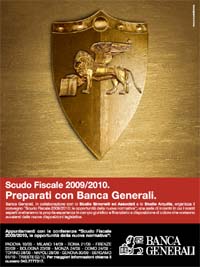 In occasione del recente provvedimento governativo sullo Scudo Fiscale 2009, Banca Generali sceglie Arnold Italy per comunicare la propria esperienza e affidabilità. È on air dai primi di settembre la campagna stampa per promuovere le iniziative del Gruppo: si tratta di una serie di conferenze ubicate in diverse città italiane, realizzate in collaborazione con lo Studio Simonelli e Associati e lo Studio Arquilla, pensate per mettere a disposizione dei professionisti tutti gli strumenti necessari al fine di cogliere al meglio le opportunità della nuova legge. La creatività sottolinea i valori di Banca Generali attraverso uno scudo pronto da usare, sotto le insegne del Leone di San Marco, storico simbolo del Gruppo Generali. La campagna, pianificata su stampa nazionale quotidiana e periodica, è firmata da Flavio Pedazzini (copy) e Fabiola D'Ettorre (art) con la vicedirezione creativa di Paolo Platania ed Alessio Salvato e la direzione creativa di Gianluca Nappi.