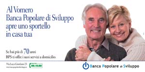 Banca Popolare di Sviluppo torna in comunicazione con un nuovo ambizioso progetto: sperimentare in un’area test una nuova serie di servizi paricolarmente innovativi, come il prolungamento dell’orario di lavoro e la creazione di una serie di servizi a domicilio, in coerenza con la filosofia 'territoriale' dell’Istituto che punta a creare un rapporto sempre più diretto e personalizzato con i propri clienti.
