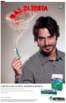 Bayer torna in comunicazione con Aspirina ed una nuova campagna firmata dall’agenzia DLV BBDO declinata su diversi media. 'Per semplificarti la vita', questo il claim di una campagna pienamente integrata che coinvolge non solo la stampa e la tv, ma anche la radio, con tre soggetti dal tono ironico e vivace, e il web con una campagna banner e una serie di attività rivolte ad un pubblico giovane e dinamico come la stessa Aspirina. Protagonista della campagna è Aspirina in Granuli, la referenza più giovane nella famiglia Aspirina, presentata da un moderno anchorman che ne illustra i plus in maniera dinamica. Grazie alla sua formulazione in granuli, si assume direttamente sulla lingua senza bisogno di acqua e così inizia ad agire sul dolore già dopo pochi minuti. Inoltre la sua confezione la rende pratica da portare con sé.