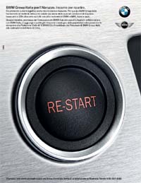 In questo senso, il visual è costituito dal close-up sul bottone di accensione di una BMW, sul quale la tradizionale scritta start/stop viene modificata in re-start.