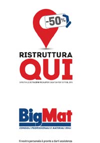Dal 27 gennaio su tutto il territorio nazionale e nel vasto mondo della rete - web e social - BigMat Italia lancia il suo nuovo stile con un’immagine totalmente nuova. Primo step: promuovere il settore della ristrutturazione.Essenziale, pulita ed elegante. Si può riassumere così l’immagine della nuova campagna di comunicazione di BigMat Italia, il Gruppo nazionale di Punti Vendita di materiali edili indipendenti. La declinazione sarà molto digital, senza dimenticare i mezzi tradizionali, ed è la prima volta che un gruppo come BigMat promuove una campagna integrata con strumenti digitali. L’obiettivo, oltre a lanciare un nuovo stile del Gruppo, è soprattutto puntare i riflettori sul settore della ristrutturazione e sugli oltre 170 Punti Vendita BigMat in Italia, partner ideali per chiunque voglia approfittare delle detrazioni fiscali sulle ristrutturazioni edili ancora in vigore per tutto il 2015.