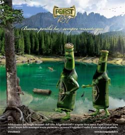 Riparte la campagna di comunicazione di Birra Forst ideata dall’agenzia Cayenne e la supervisione di Cellina von Mannstein, Communication & Creative Director di Forst, con soggetto Forst 1857.Il concept creativo della comunicazione di Birra Forst ruota sempre intorno al posizionamento unico del brand: una birra buona e di qualità perché nasce dalla natura incontaminata dell’Alto Adige/Südtirol. 'Buona perché ha sempre vissuto qui' recita la head, sottolineando lo stretto legame con il proprio territorio di provenienza. La campagna si focalizza quest’anno sul soggetto Forst 1857, una birra a tutto campo, ideata e prodotta in onore del prestigioso traguardo dei 150 anni dell’azienda e ideale per un mercato giovane. Ecco quindi che la specie unica creata da Cayenne ha questa volta le sembianze delle bottigliette di 1857, che 'scorazzano' in un tipico paesaggio altoatesino, incontaminato ed inimitabile.