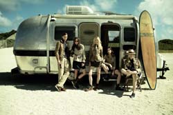 Bermuda, pantaloni chinos kaki, giubbini chiusi sopra alle polo, per le donne giacche e giubbini con cinture sopra a gonne bon ton o shorts cortissimi, t-shirts con immagini vintage di pin up americane, capi in cotone tinti in capo e lavati, tutto quanto per un insieme di scatti che alternano foto di gruppo a primi piani.